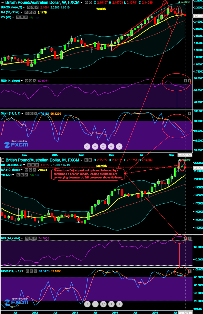 We traced out bearish gravestone doji patterns around 2.1552 levels on monthly charts as well as on weekly charts at around 2.1458 and again on 2.1586 levels. These bearish pattern dojis are an extremely helpful for traders visually to see where resistance and supply is likely located. After an uptrend, the Gravestone Doji can signal to traders that the uptrend could be over and that long positions should probably be exited.