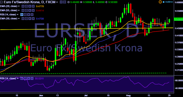 We prefer to take long position in EUR/SEK around 9.50, stop loss 9.4800 and target 9.5596/9.5950 marks.