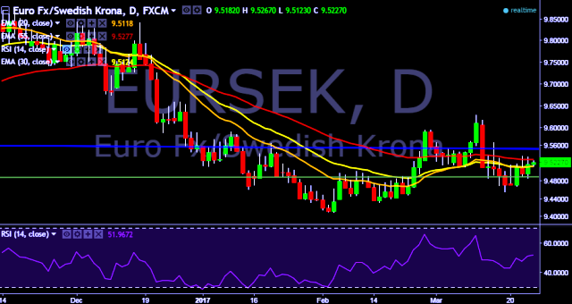 We prefer to take short position in EUR/SEK only below 9.5182, stop loss 9.5350 and target of 9.4852.