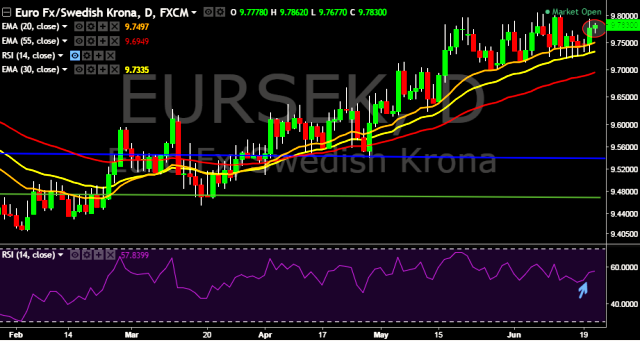We prefer to take long position in EUR/SEK around 9.7750, stop loss 9.7500 and target of 9.8008.