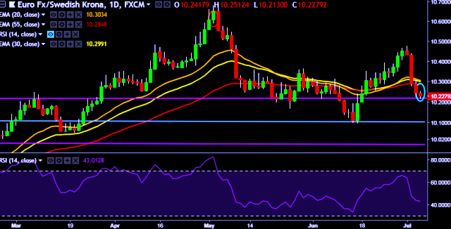 We prefer to take short position in EUR/SEK around 10.2350, stop loss 10.2512 and target 10.1350.