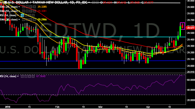 We prefer to take long position on USD/TWD only above 29.64, stop loss 29.43 and target of 30.02.