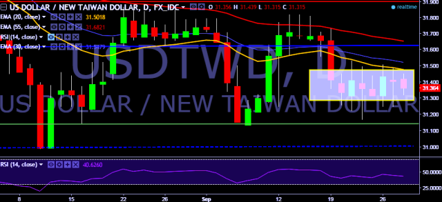 We prefer to go short on USD/TWD only below 31.31 with stop loss at 31.52 and target of 31.16.