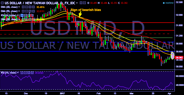 We prefer to take short position in USD/TWD around 30.42, stop loss 30.60 and target of 30.18/30.06.