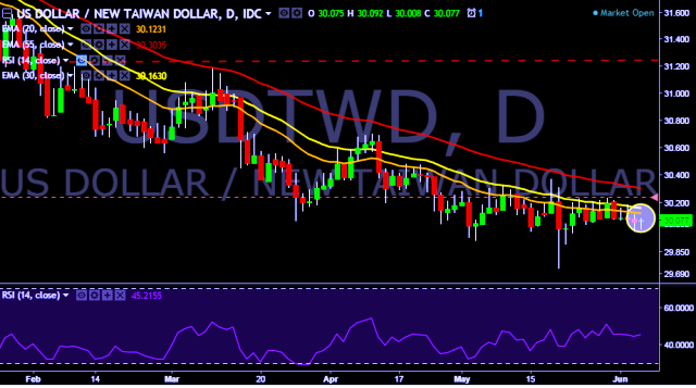 We prefer to take short position in USD/TWD only below 30.00, stop loss at 30.23 and target of 29.90/29.72/29.50/29.28.