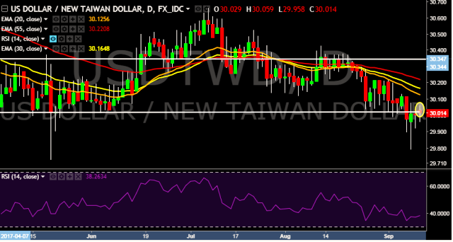 We prefer to take short position in USD/TWD only below 29.92 mark, stop loss at 30.11 and target of 29.72/29.50.