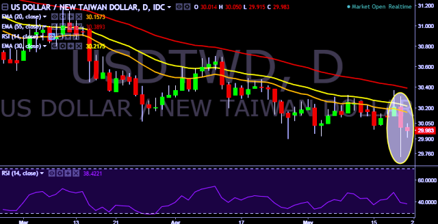We prefer to take short position in USD/TWD around 30.00, stop loss at 30.31 and target of 29.72/29.50/29.28.