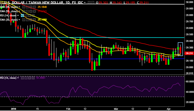 We prefer to take short position on USD/TWD around 29.25 mark, stop loss 29.34 and target of 29.02.