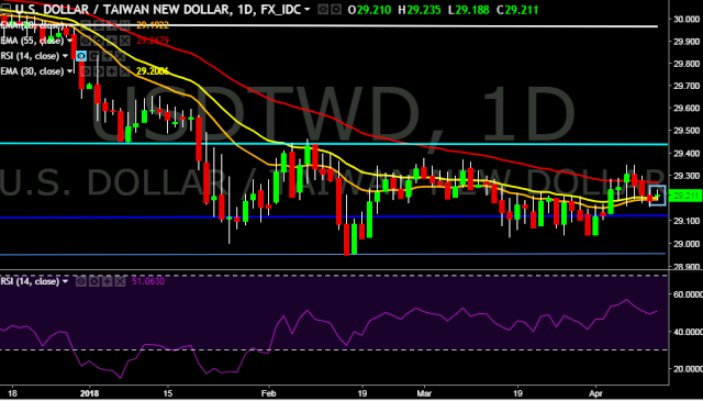 We prefer to take short position on USD/TWD only below 29.10 mark, stop loss 29.30 and target of 28.89.
