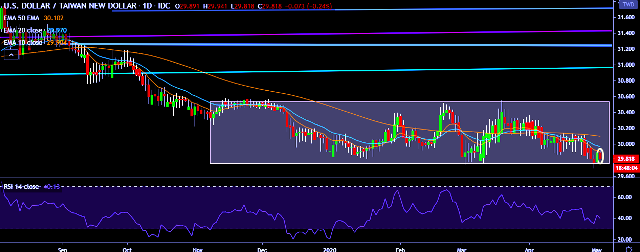 We prefer to take short position in USD/TWD around 29.85, stop loss at 30.02 and target of 29.47/29.28.