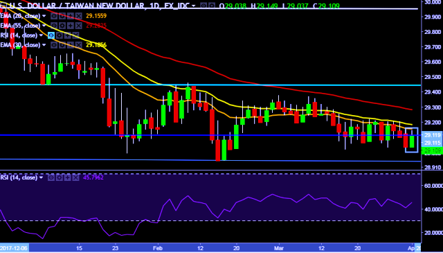 We prefer to take short position on USD/TWD only below 29.02 mark, stop loss 29.20 and target of 28.89/28.77.