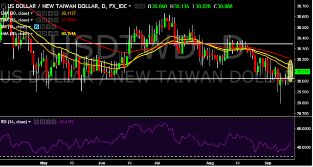 - USD/TWD is currently trading around 30.09 marks.