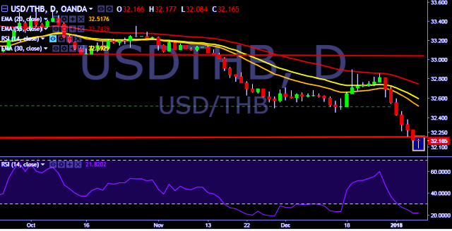 We prefer to take short position in USD/THB around 32.16, stop loss at 32.38 and target of 31.93.