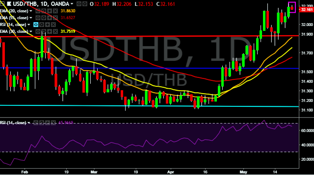 We prefer to take long position in USD/THB only above 31.22, stop loss at 32.02 and target of 32.60.