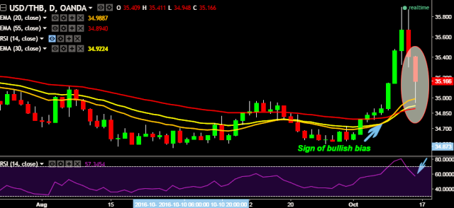 We prefer to go long on USD/THB around 34.95, stop loss 34.55 and target 35.48/35.90/36.05/36.44.
