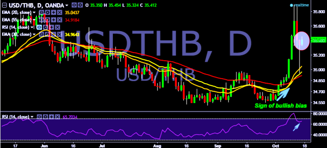 We prefer to go long on USD/THB around 35.38, stop loss 35.14 and target 35.67/35.90/36.05/36.44.