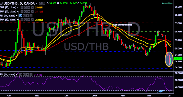 We prefer to take short position in USD/THB around 34.80, stop loss at 34.97 and target of 34.61/34.51.
