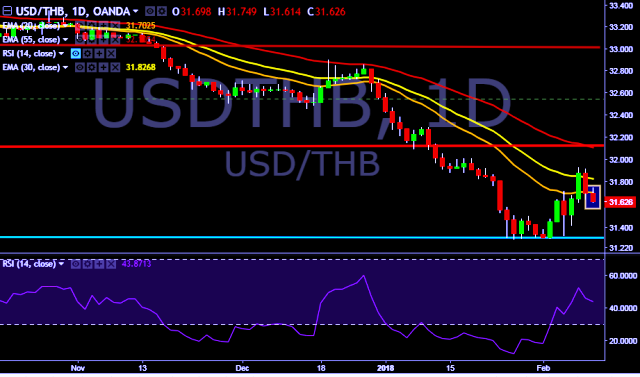 We prefer to take short position in USD/THB around 31.68, stop loss at 31.90 and target of 31.30.