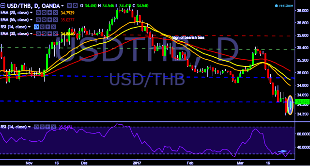 We prefer to take short position in USD/THB around 34.55, stop loss at 34.70 and target of 34.32.