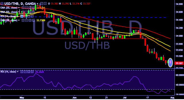 We prefer to take long position in USD/THB only above 33.40, stop loss 33.28 and target of 33.77.