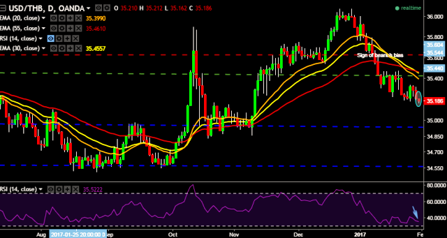 We prefer to take short position in USD/THB around 35.20, stop loss 35.32 and target of 35.04.
