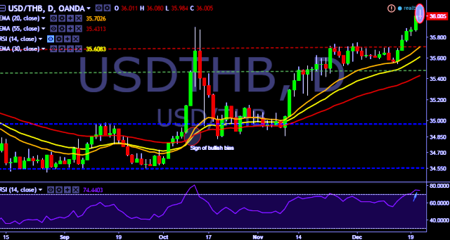 We prefer to take long position in USD/THB around 36.00, stop loss at 35.85 and target of 36.25/36.39.