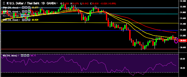 We prefer to take short position on USD/THB around 30.90, stop loss at 30.98 and target of 30.56.