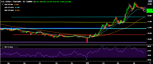 We prefer to go long on USD/THB around 32.50, stop loss at 32.40 and target of 32.72/32.91.