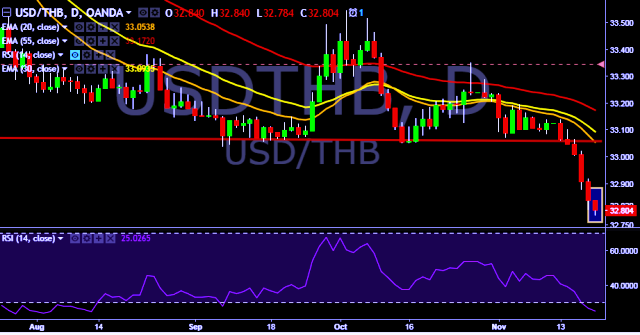 We prefer to take short position in USD/THB around 32.82, stop loss at 33.03 and target of 32.52.