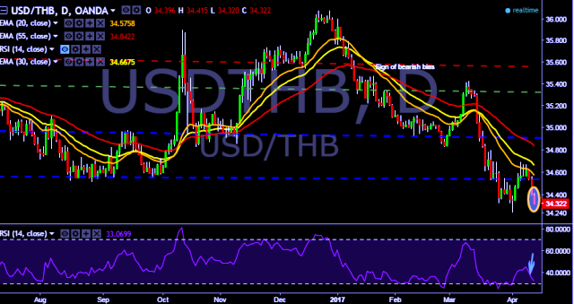 We prefer to take short position in USD/THB around 34.36, stop loss 34.56 and target of 34.20/34.01.