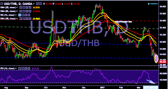 We prefer to take short position in USD/THB around 34.50, stop loss at 34.72 and target of 34.20.
