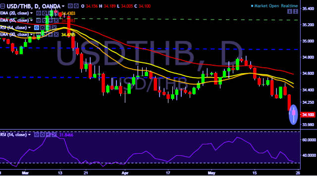 We prefer to take short position in USD/THB around 34.12, stop loss at 34.34 and target of 33.74/33.58.