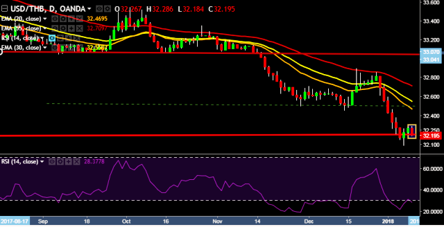 We prefer to take short position in USD/THB around 32.22, stop loss at 32.30 and target of 32.08/31.93.
