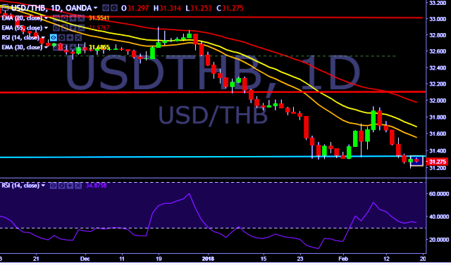 We prefer to take long position in USD/THB only above 31.32, stop loss at 31.18 and target of 31.50/31.75.