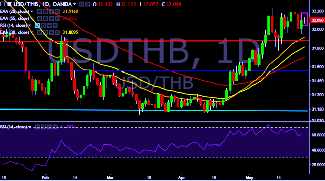 We prefer to take long position in USD/THB around 32.08, stop loss at 31.91 and target of 32.22/32.48.
