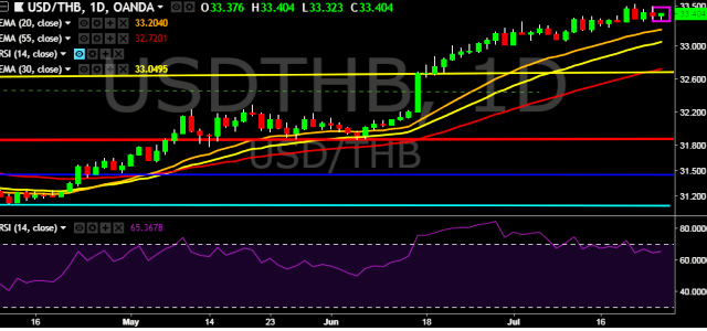 We prefer to take long position on USD/THB only above 33.52, stop loss at 33.30 and target of 33.78.