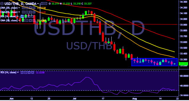 We prefer to take short position in USD/THB only below 33.20, stop loss at 33.32 and target of 33.01.