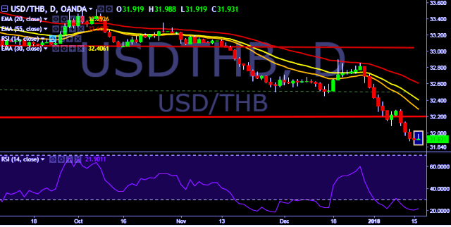 We prefer to take short position in USD/THB only below 31.87, stop loss at 32.04 and target of 31.57.