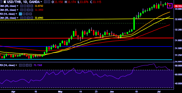 We prefer to take short position in USD/THB around 33.12, stop loss at 33.20 and target of 33.02/32.90.