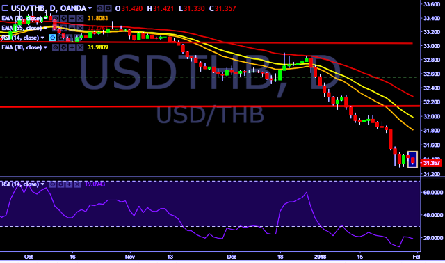 We prefer to take short position in USD/THB only around 31.38, stop loss at 31.50 and target of 31.11.