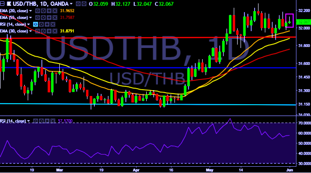 We prefer to take short position in USD/THB only below 32.04, stop loss at 32.13 and target of 31.86.