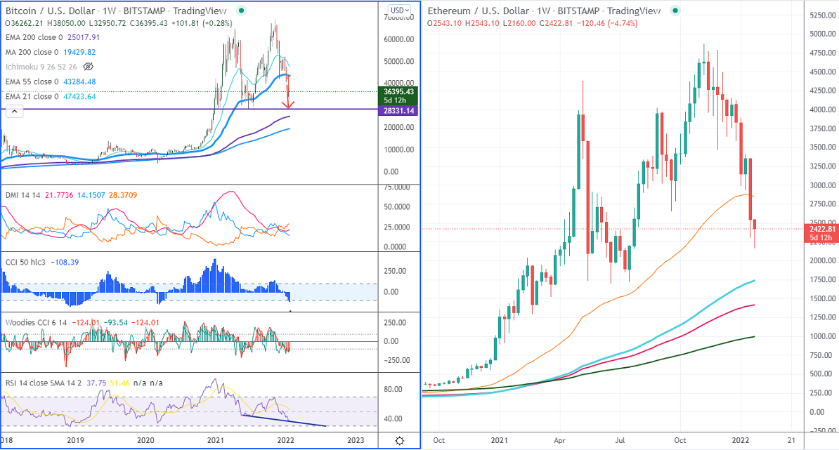 Levels to watch- $2150 Any close below will drag the ETH to near-term support of $2000/$1700. Major demand zones are $1700. A breach below $2600 targets $1500/$1288.