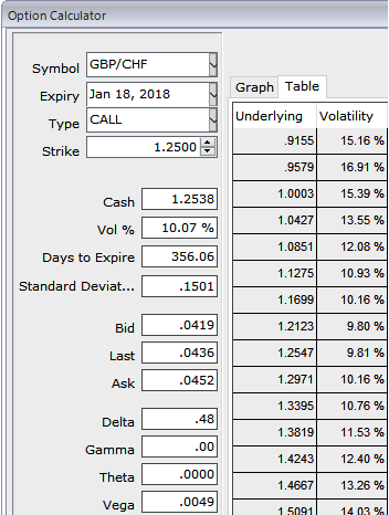c) While daily realized volatility in GBPCHF is not remarkable, the mild slope of the 1Y-2Y vol curve mitigates theta decay, which in any case is not onerous for options that far out in tenor.