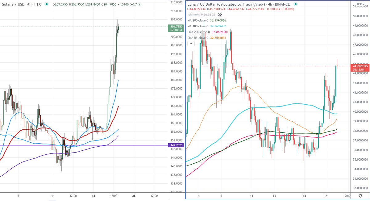 Top Altcoins Strength Index (4- hour chart calculated using EMA and Average directional index )