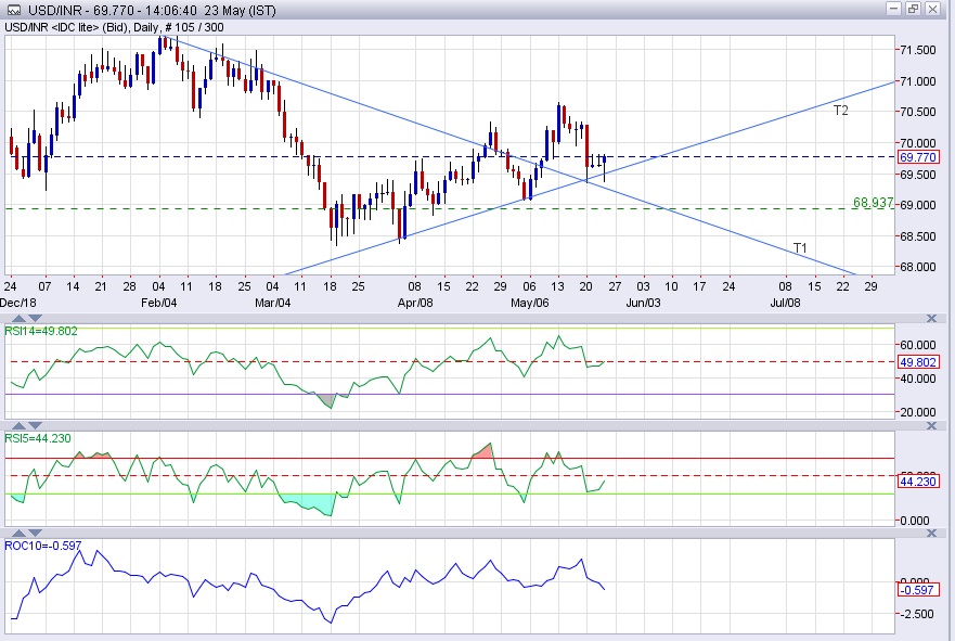 - The Indian rupee has retraced all of today’s gain and the price action has so far formed a Doji candle. USD/INR retreated from the weekly low around 69.35 per USD area, made on Monday after the exit polls predicted a sweeping BJP victory. The exchange rate is currently at 69.71 per USD. Today’s price action suggests that this event could trigger a reversal going ahead.