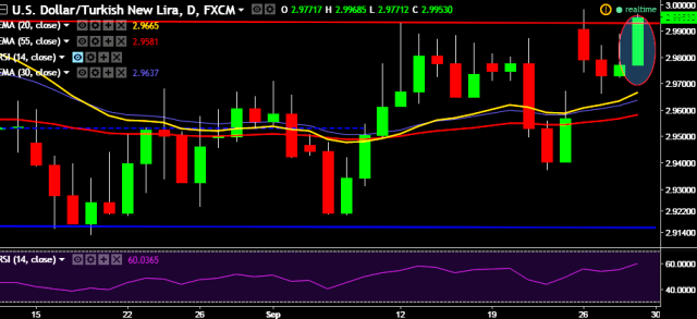 We prefer to go long on USD/TRY around 2.99, stop loss at 2.9663 and target of 3.0114/3.0268.