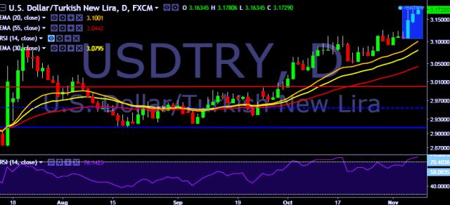 We prefer to go long on USD/TRY around 3.1680, stop loss at 3.1422 and target of 3.1780/3.1978.