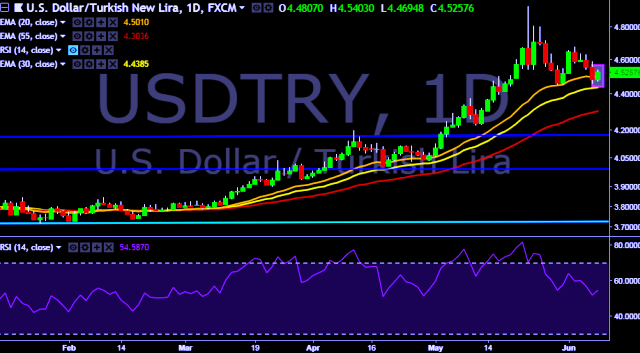 We prefer to go long on USD/TRY only above 4.5403, stop loss at 4.5000 and target of 4.5868.