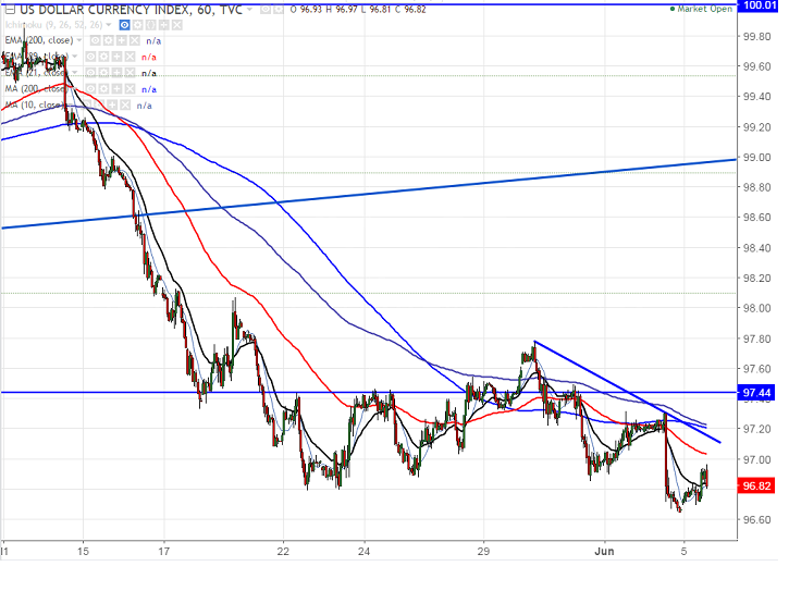 - US Dollar index has broken the triple bottom at 96.80 and declined till 96.65. It is currently trading around 96.91.