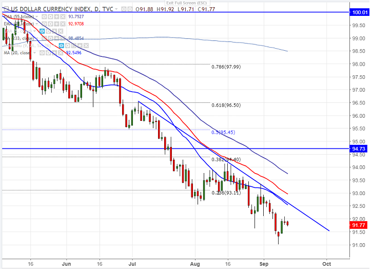 - US Dollar index has recovered mildly till 92.08 yesterday after making a low of 91.01 level. It is currently trading around 91.86.